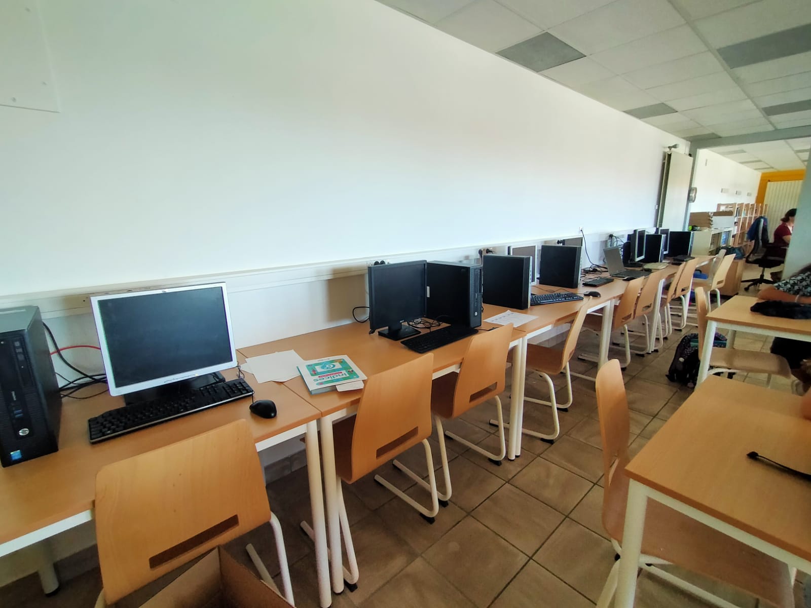 Pour compléter ce relooking, le CDI a bénéficié d’une nouvelle peinture au plafond, créant une atmosphère propice à la concentration. L’éclairage a également été amélioré, avec des luminaires modernisés et écologiques qui illuminent efficacement l’espace, rendant la lecture encore plus agréable.