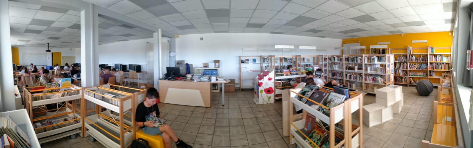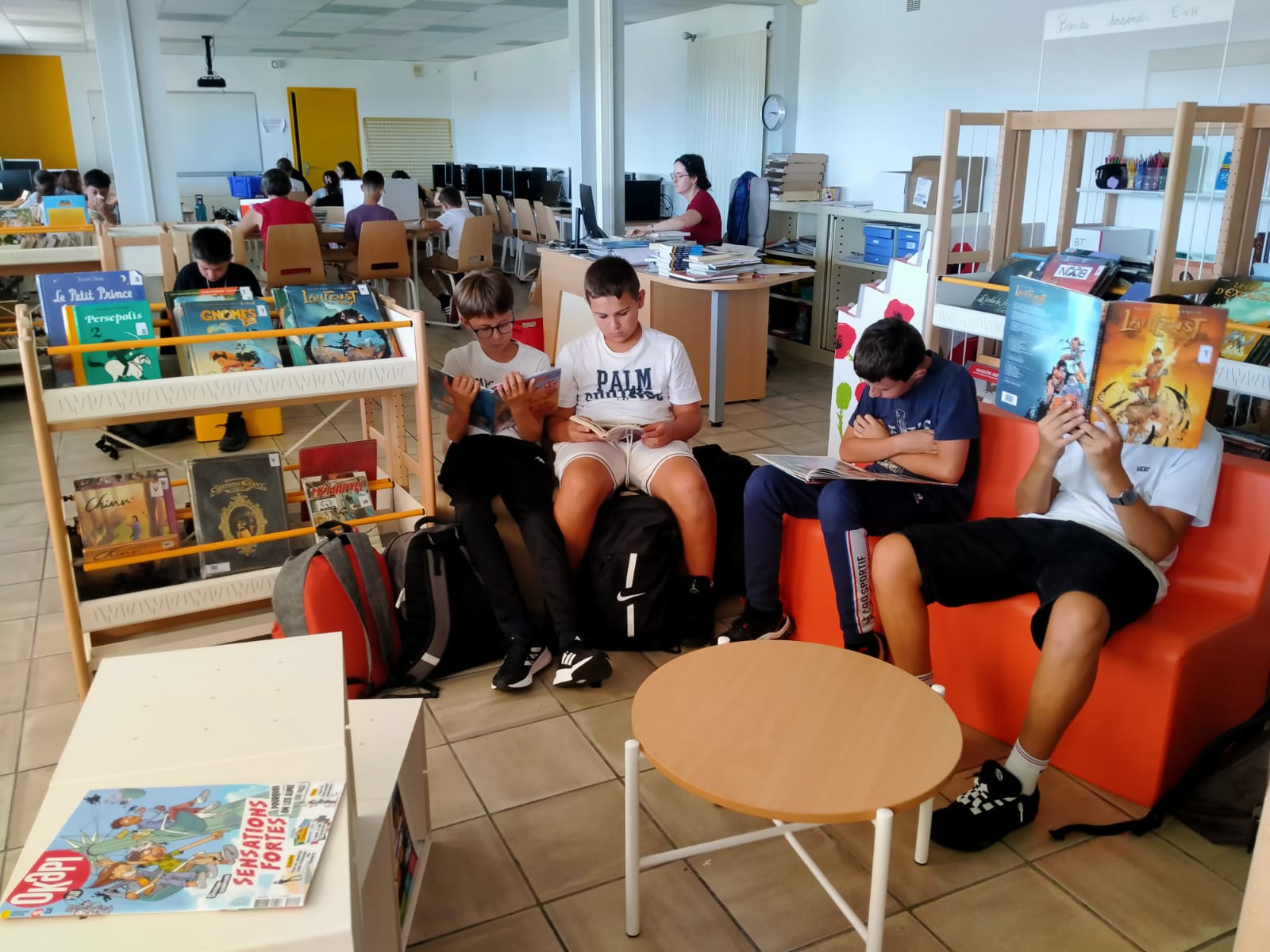 Au cœur de cette transformation, de nouveaux mobiliers modernes ont été installé et améliorent la fonctionnalité de l’espace. Le bureau de Mme Renault, notre professeure documentaliste, a été renouvelé pour offrir un cadre de travail optimal. Quelques fauteuils confortables, sont propices pour les élèves aux échanges et aux conseils sur les meilleures lectures.