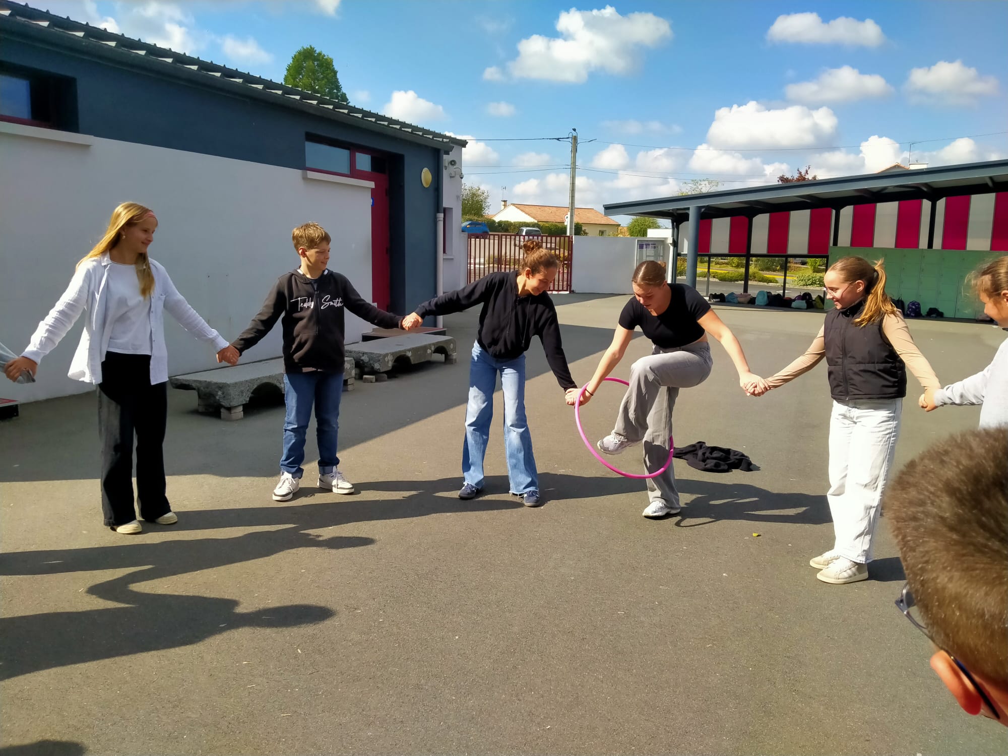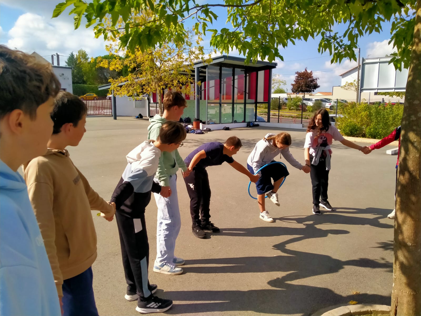 Suite à ce déjeuner, les élèves ont participé à des jeux de cohésion et de collaboration. Parmi les activités proposées, nous avons eu “Les cercles magiques”, ce jeu permet d’apprendre à tenir compte de l’autre, ainsi que “Le nœud gordien”, un jeu qui enseigne l’importance de la communication. Un défi de coordination avec une balle a également été organisé pour encourager la coopération. En fonction de la météo, des jeux de société ont également été organisés, permettant ainsi à chaque élève de s’impliquer et de s’amuser.