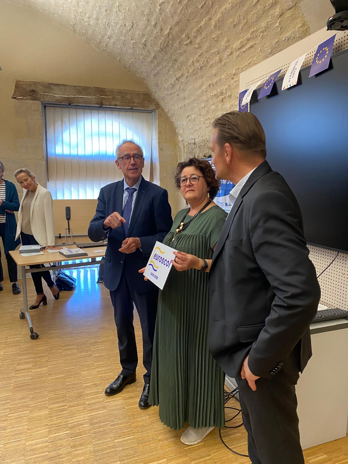 Le mardi 14 octobre, le Collège Charles Péguy et l’École Notre-Dame de Moncoutant ont eu l’honneur de recevoir la plaque Euroscol, remise par M. Périssat, Recteur de l’Académie de Poitiers. Cet événement marque une étape significative dans le parcours de nos établissements, récompensés pour leur engagement en faveur de l’ouverture européenne et de l’internationalisation.