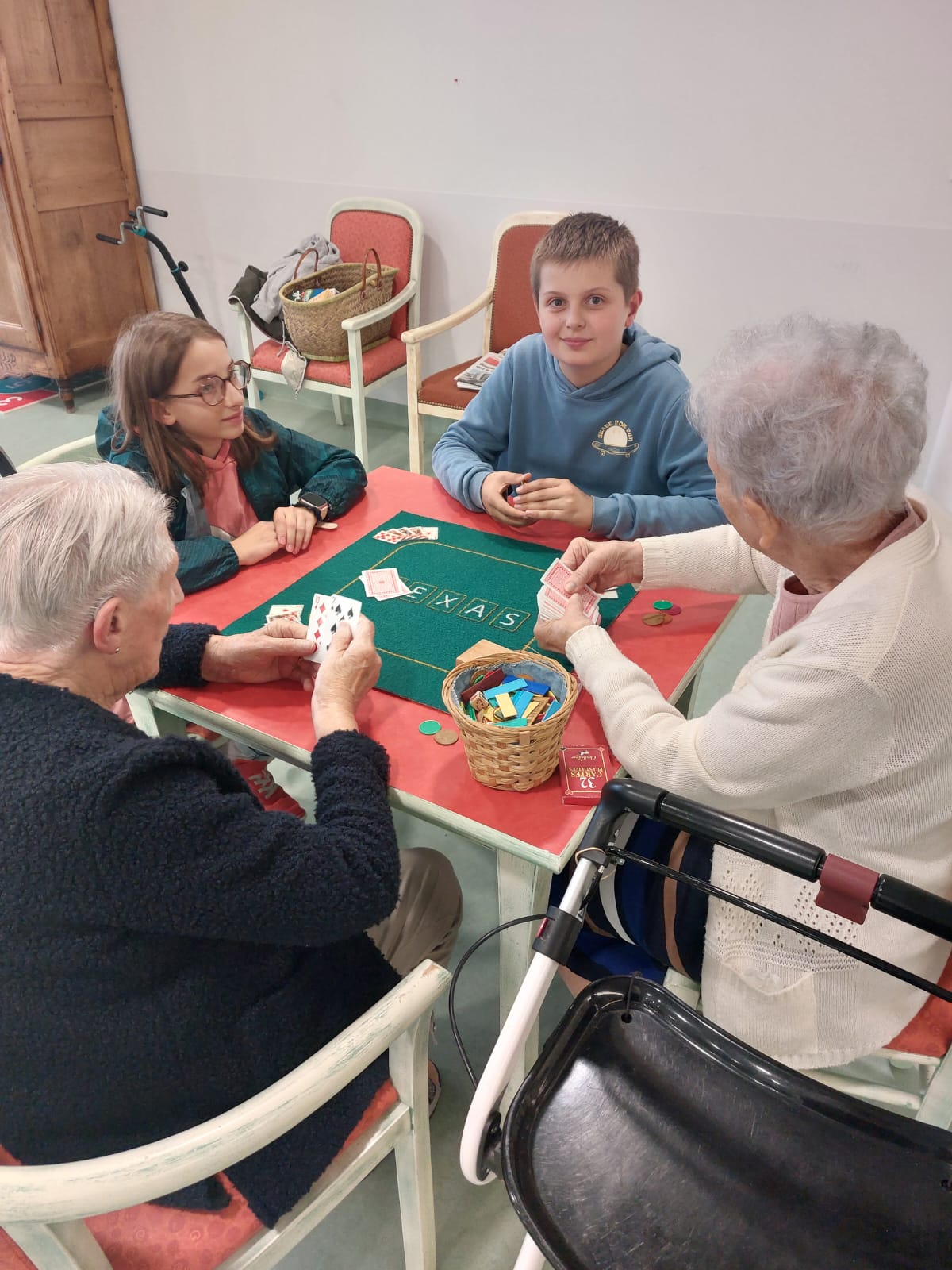Cette semaine, les élèves de la classe de 6ème4 du Collège Charles Péguy à Moncoutant ont eu le plaisir de rendre visite aux résidents de l’EHPAD Les Magnolias. Au programme : des jeux de société et de cartes qui ont apporté joie et rires à tous.