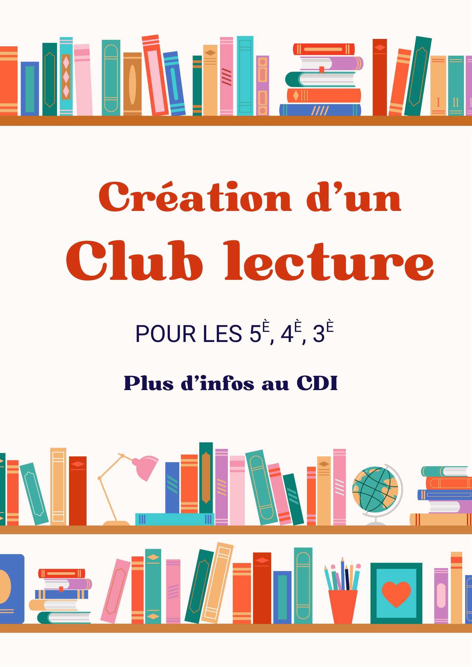 C’est avec beaucoup d’enthousiasme que nous annonçons la création d’un club de lecture au Collège Charles Péguy, initié par Mme Renault, notre professeure documentaliste. Ce club s’adresse aux élèves de 5e, 4e et 3e qui souhaitent découvrir de nouveaux horizons littéraires et partager leur passion pour la lecture.