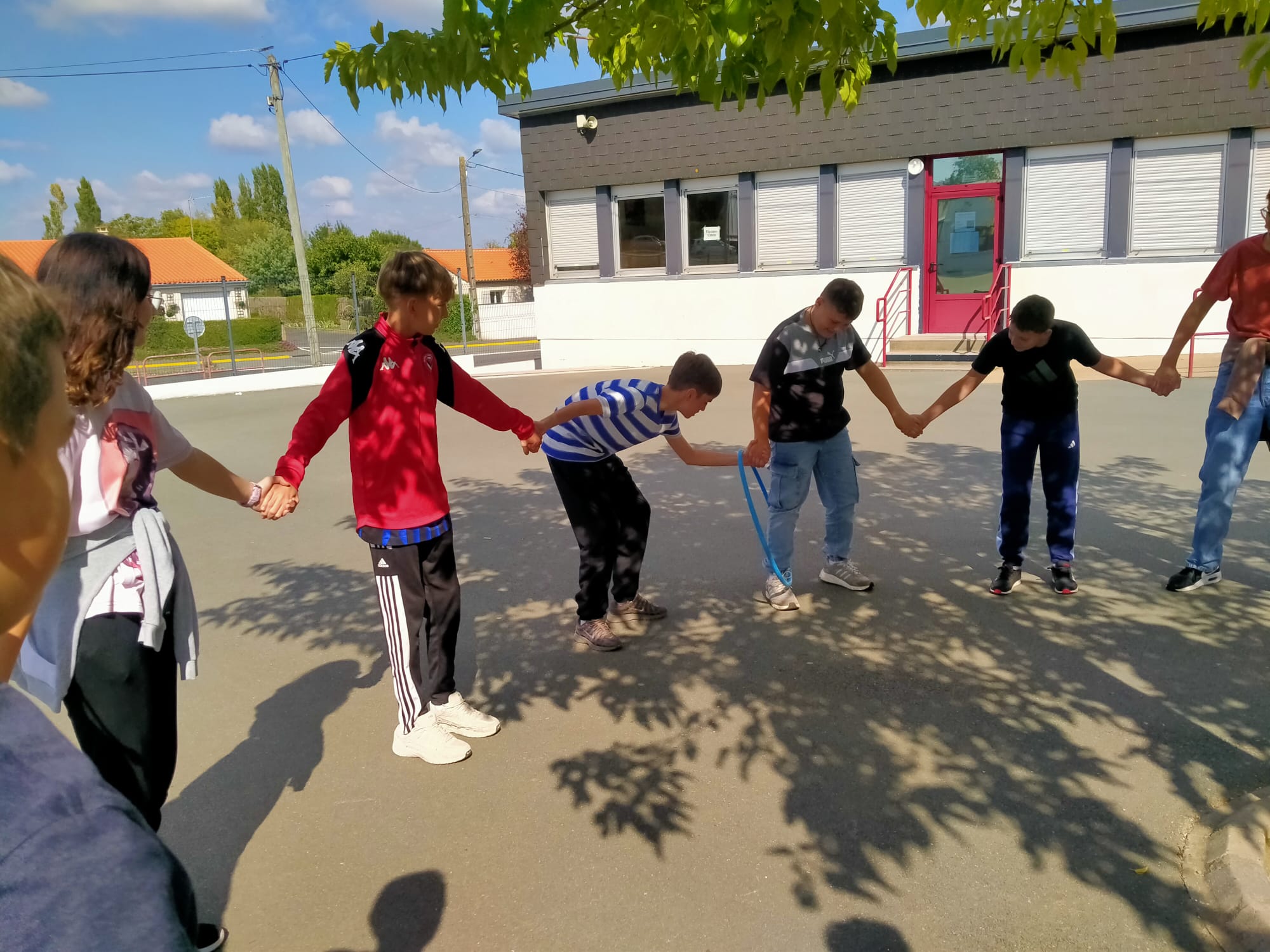 Suite à ce déjeuner, les élèves ont participé à des jeux de cohésion et de collaboration. Parmi les activités proposées, nous avons eu “Les cercles magiques”, ce jeu permet d’apprendre à tenir compte de l’autre, ainsi que “Le nœud gordien”, un jeu qui enseigne l’importance de la communication. Un défi de coordination avec une balle a également été organisé pour encourager la coopération. En fonction de la météo, des jeux de société ont également été organisés, permettant ainsi à chaque élève de s’impliquer et de s’amuser.