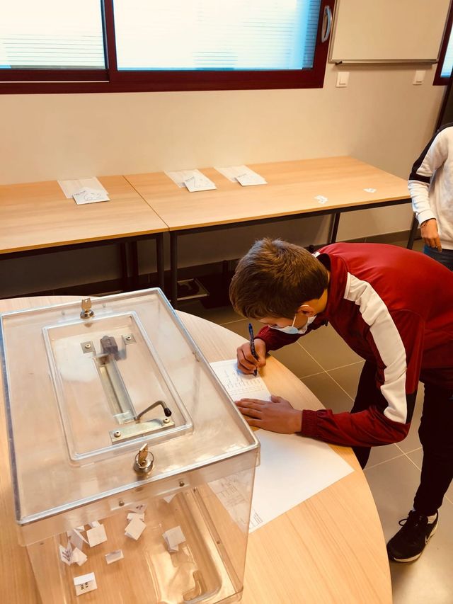 Une élection des délégués dans des conditions réelles. Les élèves prennent les bulletins de vote, se dirigent vers les isoloirs.