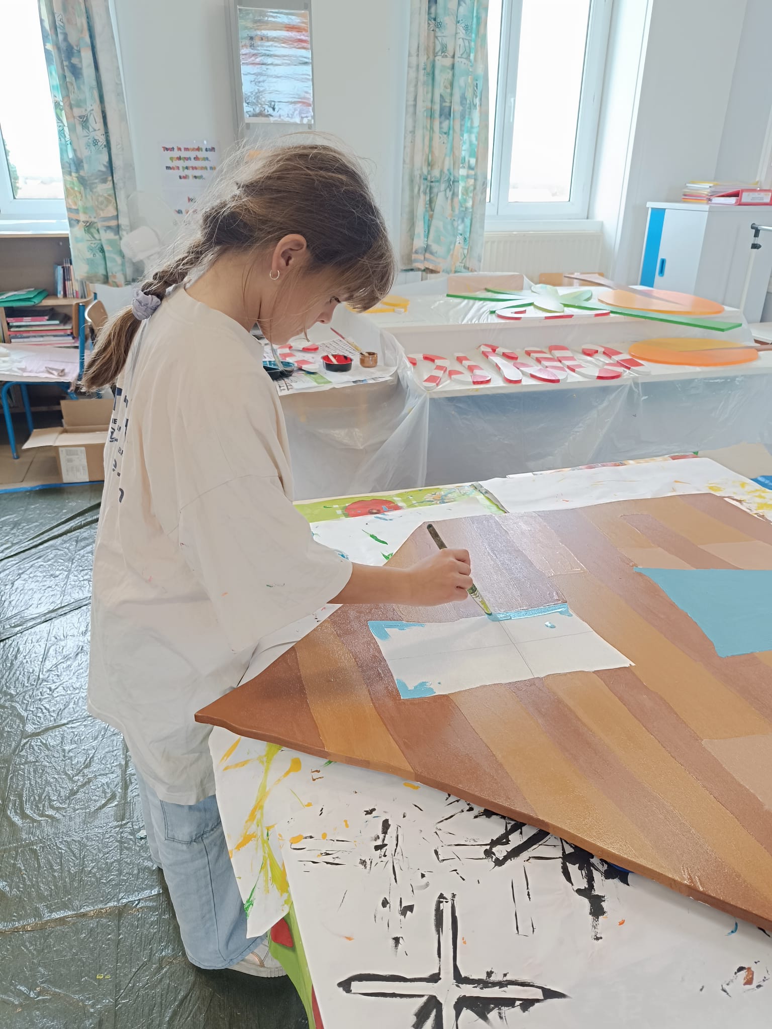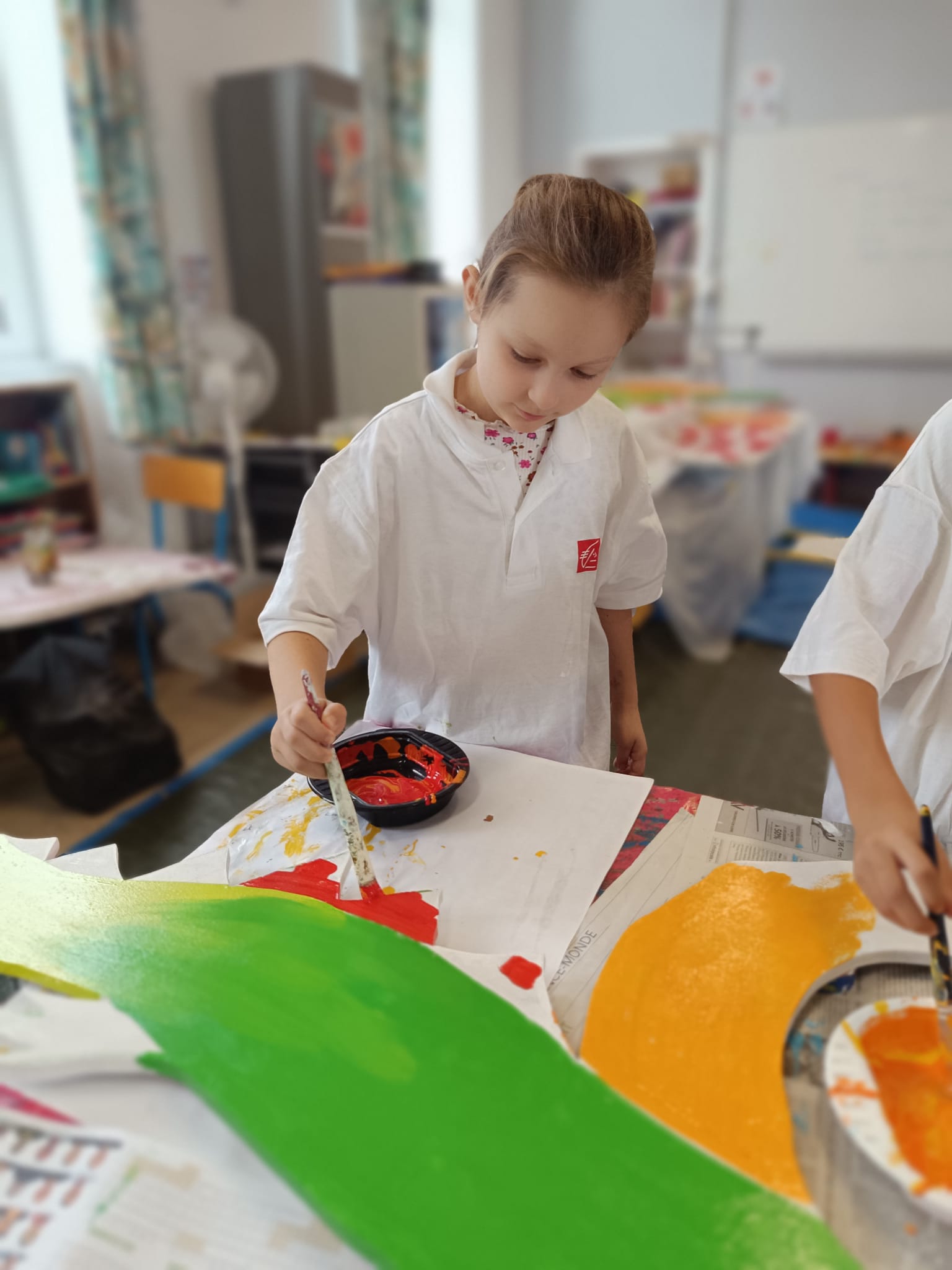 Actuellement, les élèves ajoutent des couleurs, couche par couche, des fonds jusqu’aux détails, deux jours par semaine jusqu’à début décembre. Ce projet culminera avec l’accrochage des œuvres en extérieur, permettant à toute la communauté de découvrir le talent et la créativité de nos jeunes artistes.