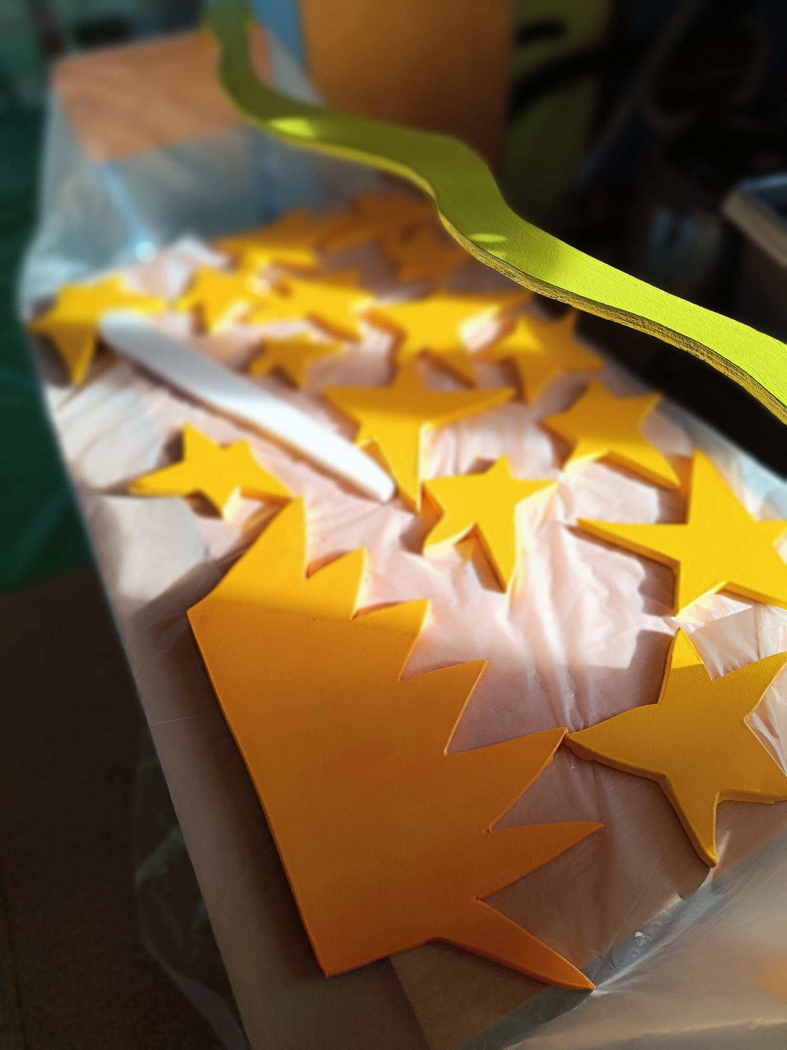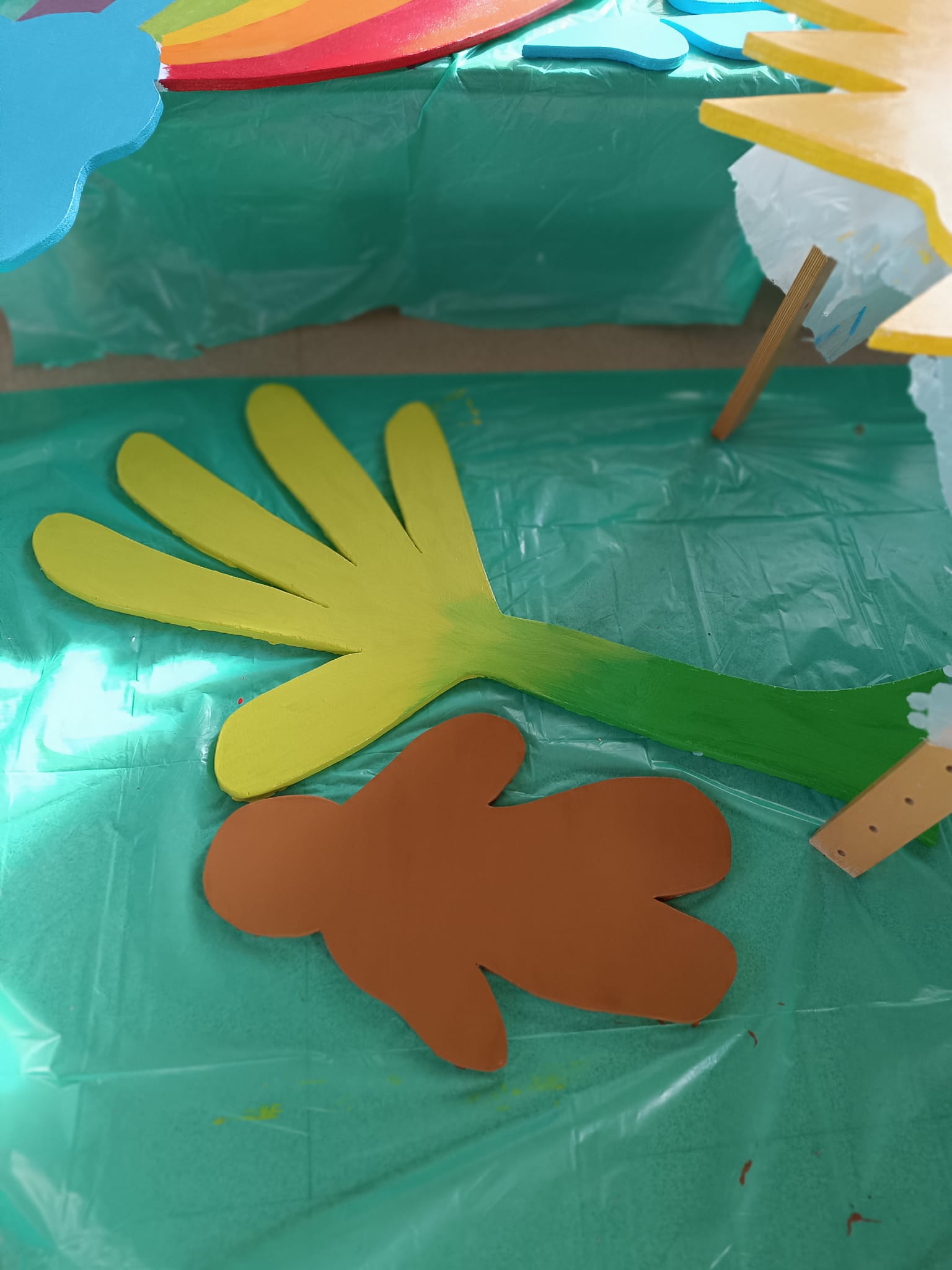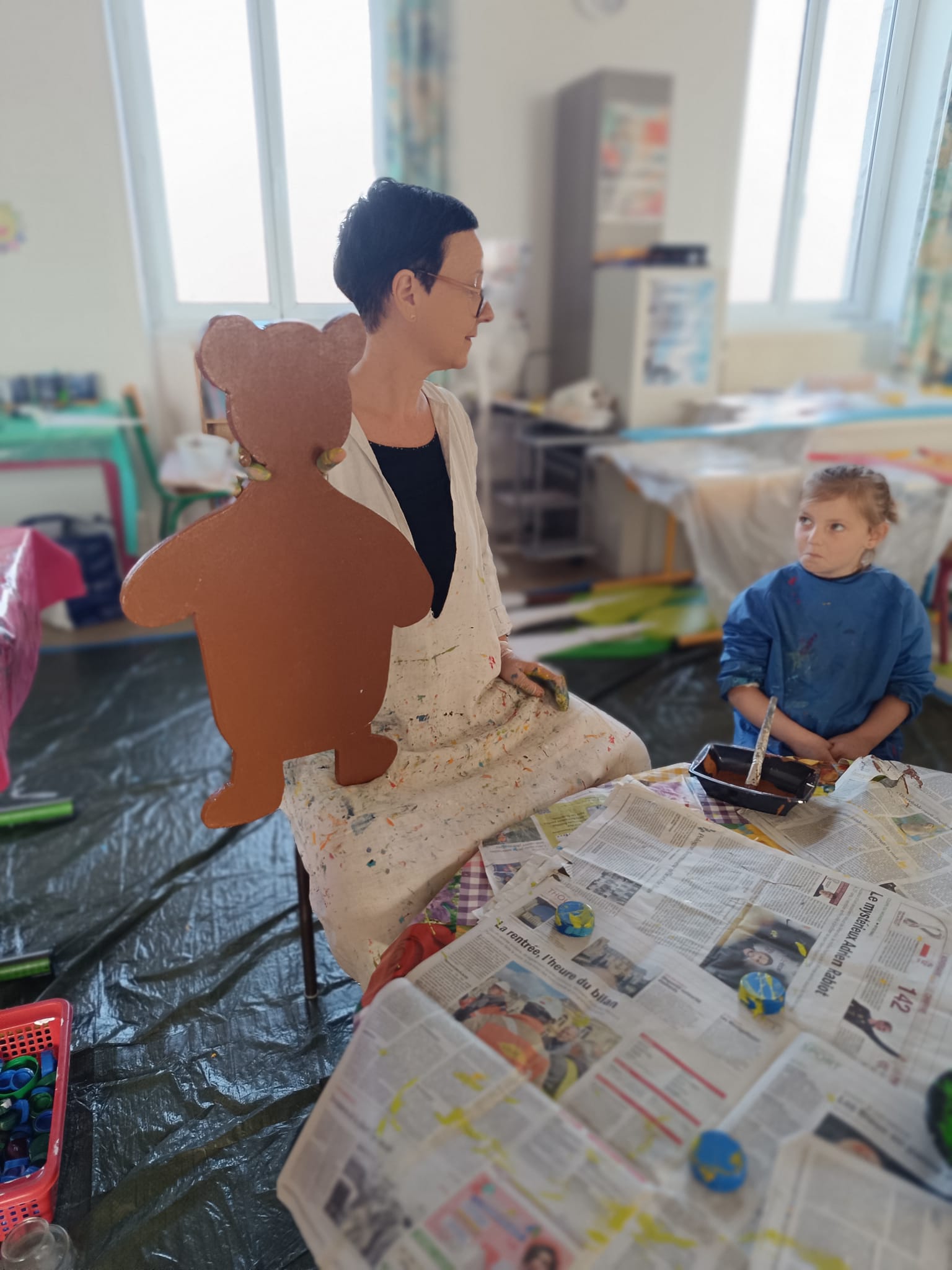 Les élèves ont dessiné des personnages, des lieux et des accessoires issus de leur imagination. Après une sélection rigoureuse, ces dessins ont été agrandis en format XXL sur des planches de bois. L’implication des familles a été essentielle, avec des parents et grands-parents participant à la découpe, au ponçage et à la peinture de la sous-couche.
