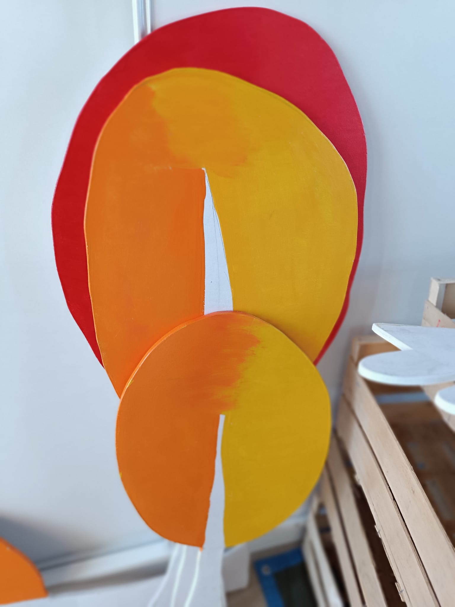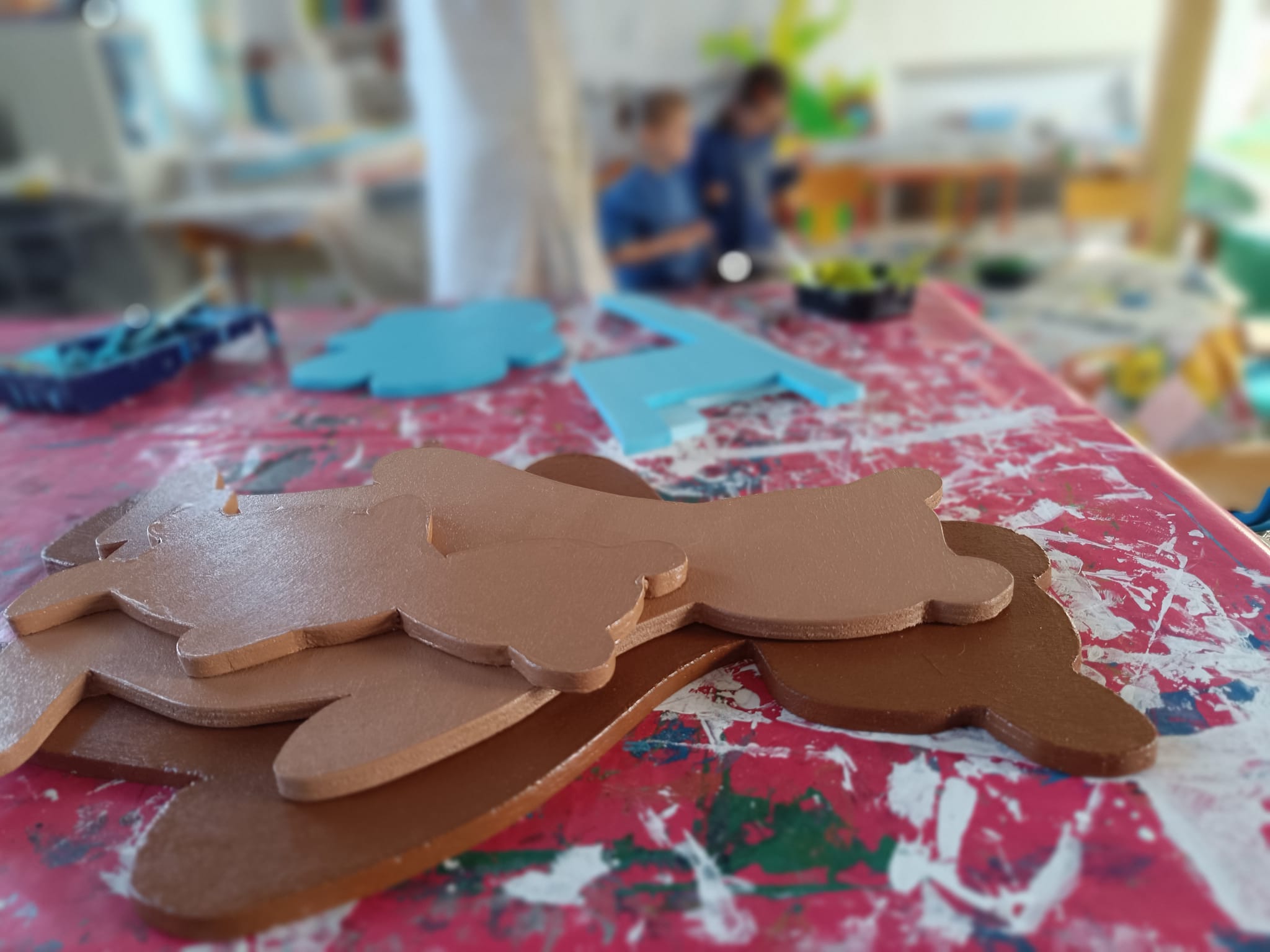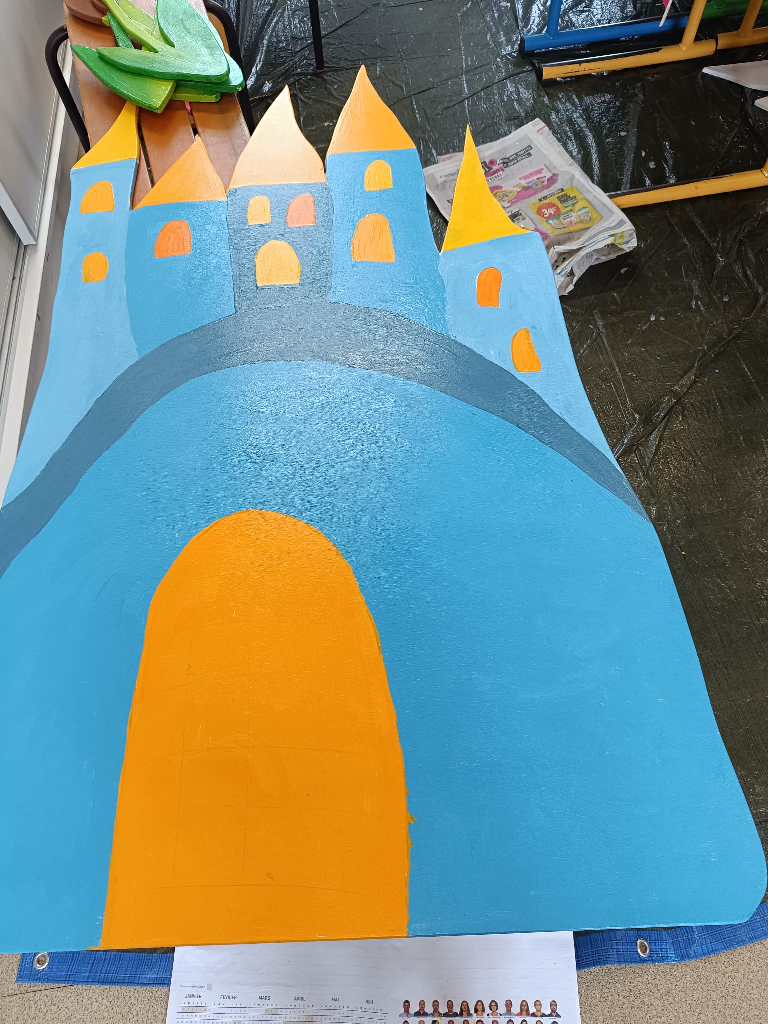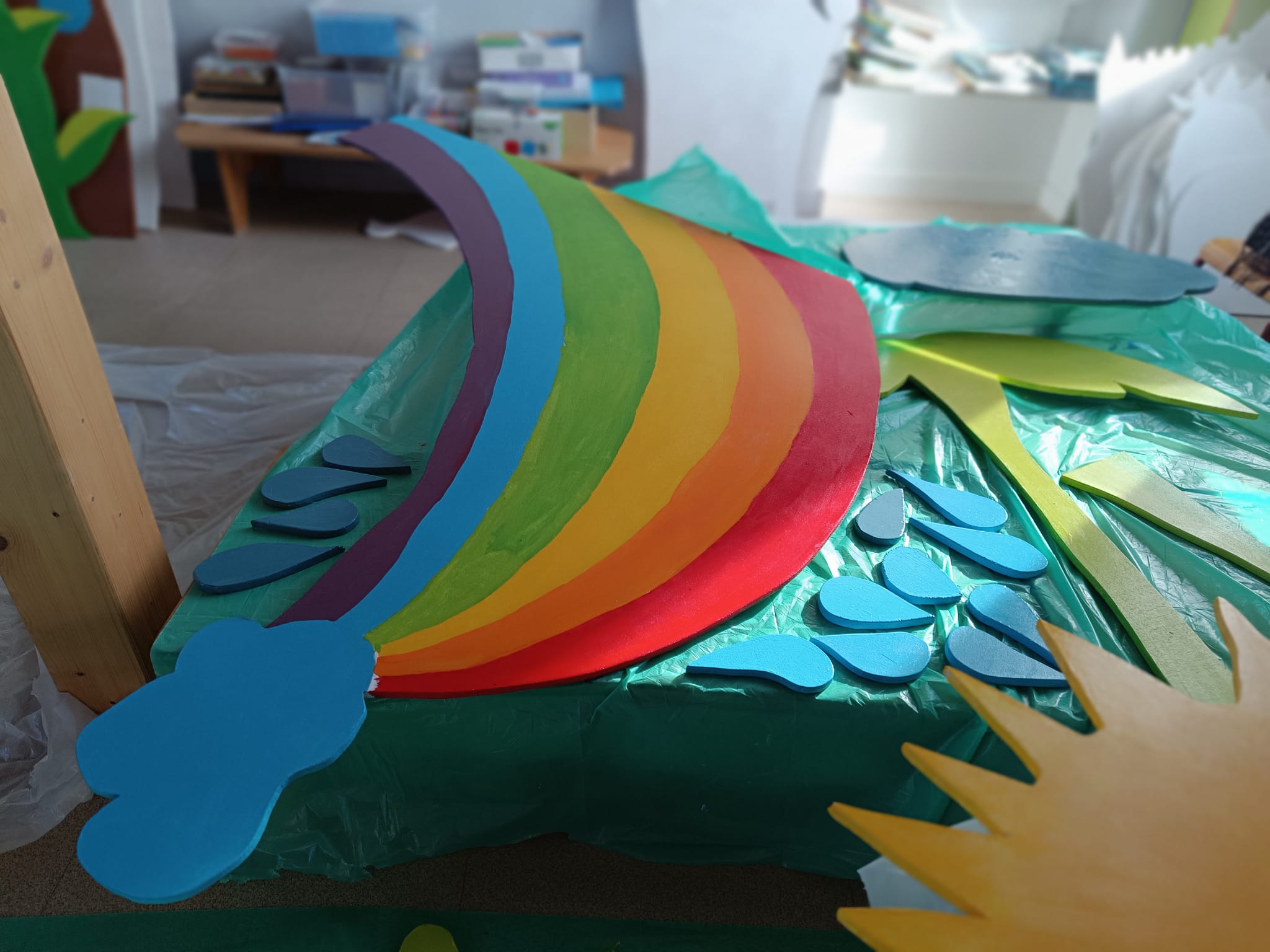 Les élèves ont dessiné des personnages, des lieux et des accessoires issus de leur imagination. Après une sélection rigoureuse, ces dessins ont été agrandis en format XXL sur des planches de bois. L’implication des familles a été essentielle, avec des parents et grands-parents participant à la découpe, au ponçage et à la peinture de la sous-couche.